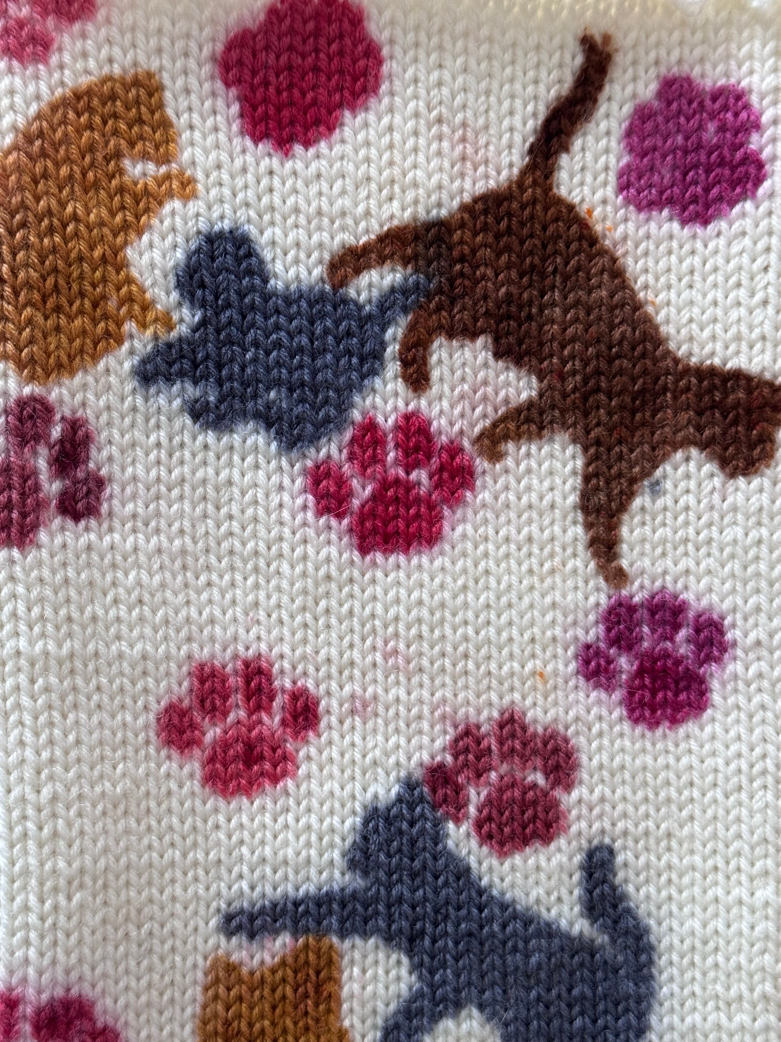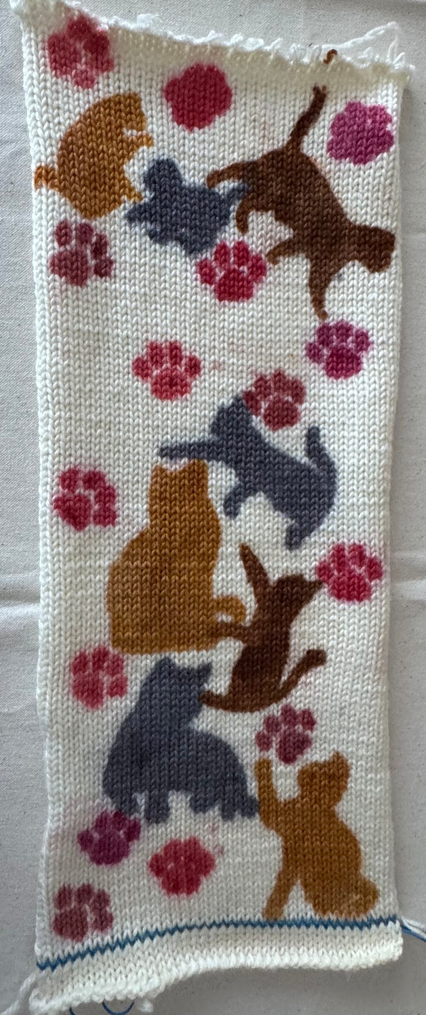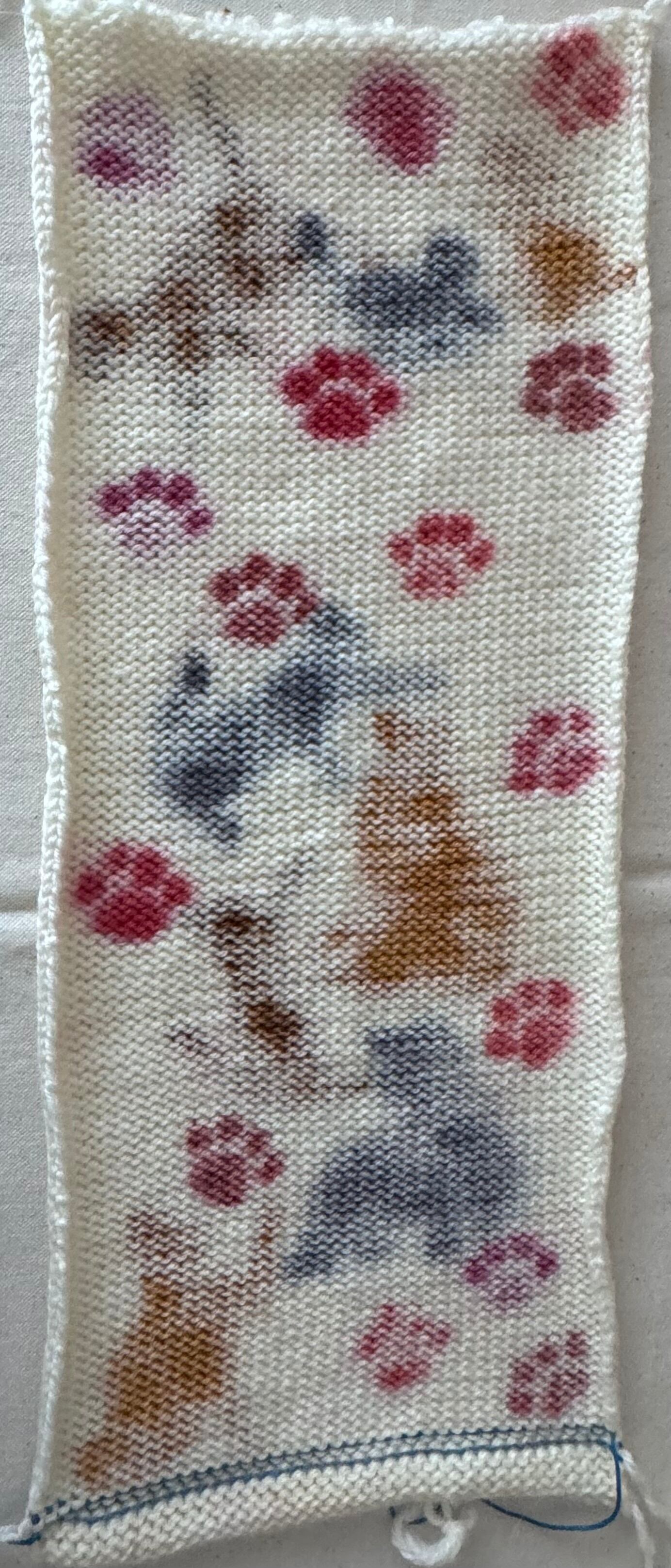 靴下を左右同時編みする事で、大体同じ柄であることができます。