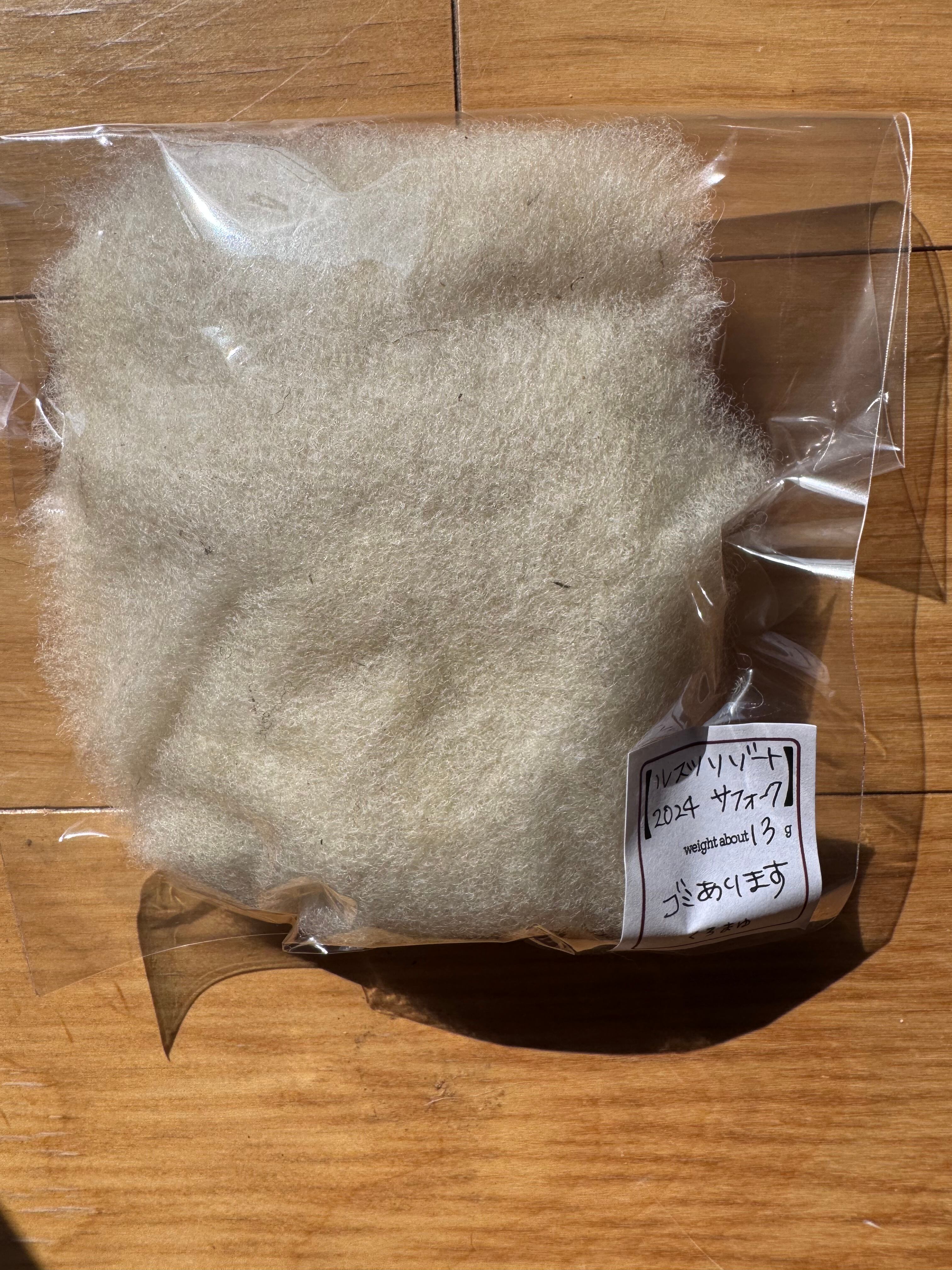 ルスツリゾートのサフォークの原毛を1頭買いして洗ってカードがけしたものです。