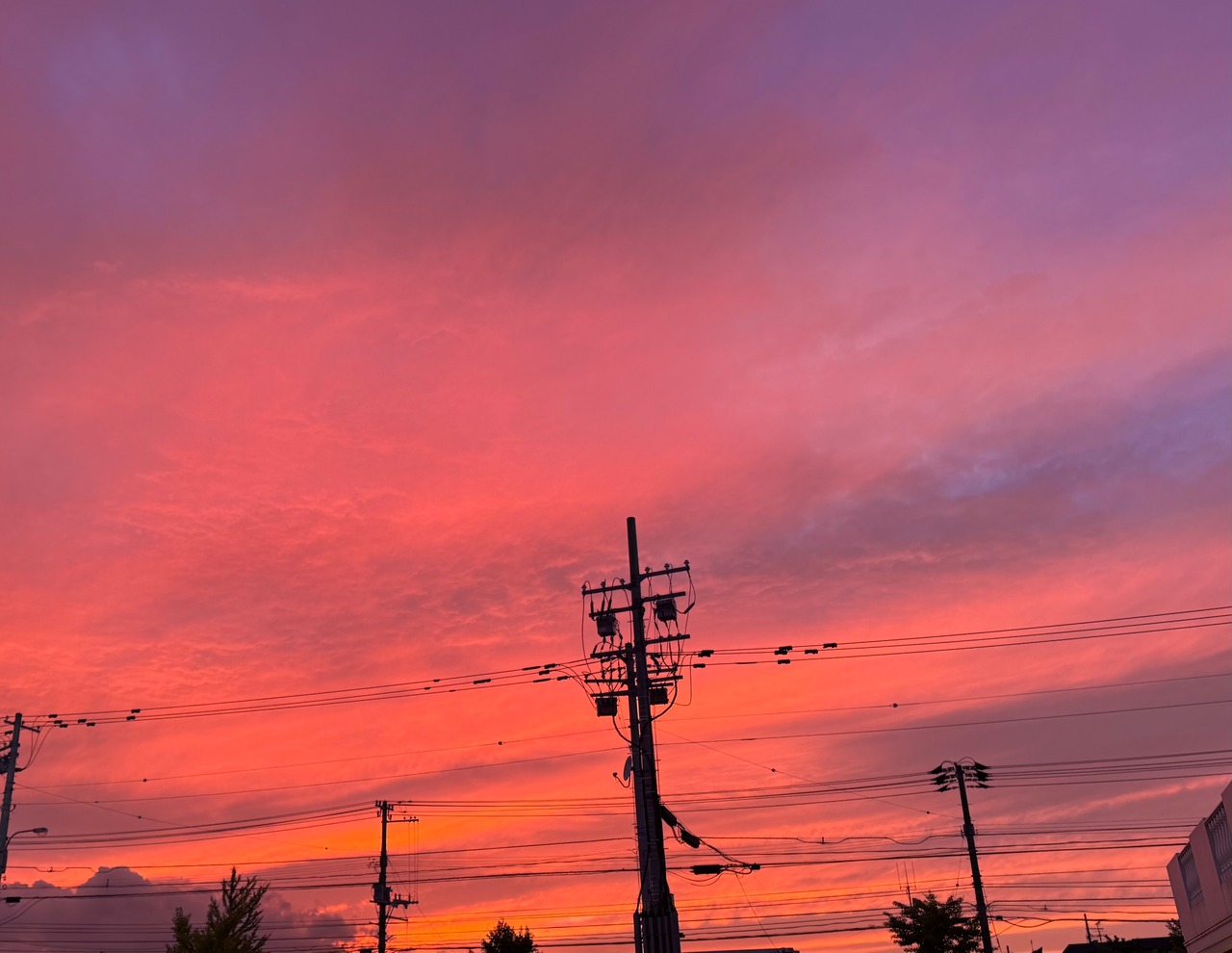 美しが丘のマジックアワーが描く、オレンジ、ピンク、青の幻想的な色合い