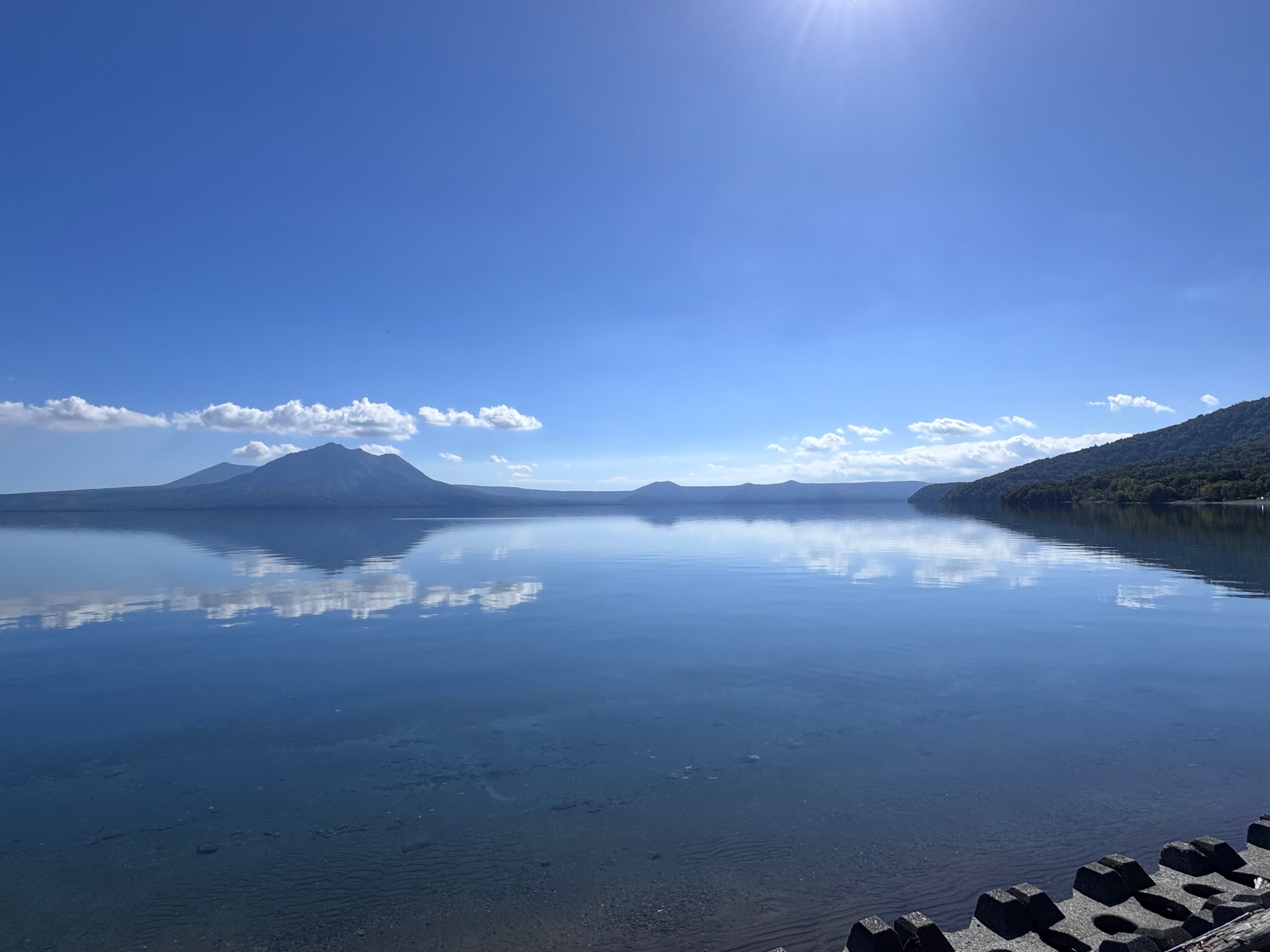 支笏湖の水面が描く、鮮やかな青と穏やかなグラデーションが心を奪います。
